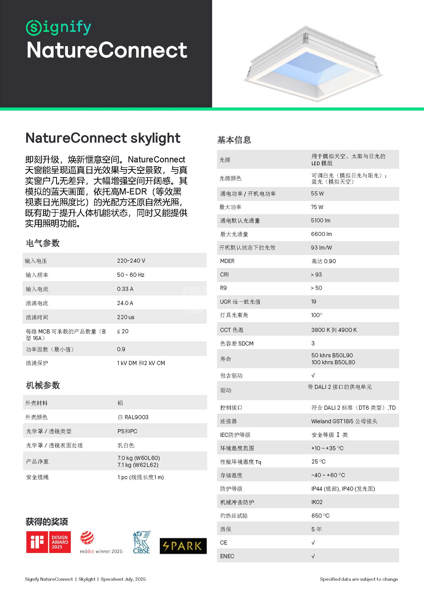 NatureConnect skylight 用于模拟天空,太阳日光